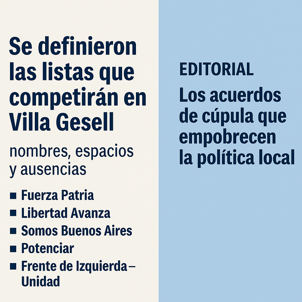 Noticias Se definieron las listas que competirán en Villa Gesell: nombres, espacios y ausencias admin Jul 20, 2025 0
